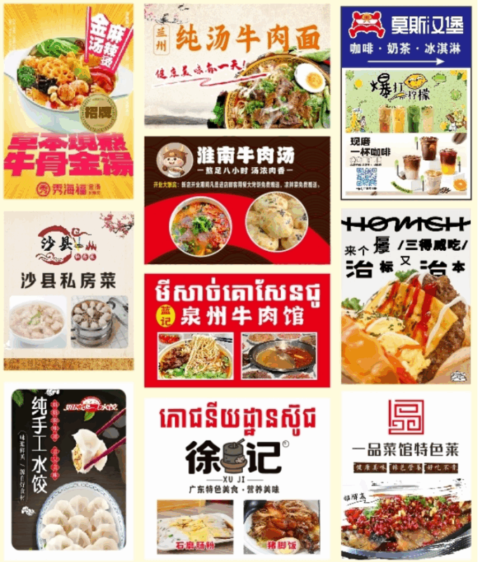 我们的美食商家有来自东北响当当的连锁品牌金汤麻辣烫,青海穆斯林民族的兰州拉面,广西桂林的螺丝粉,有来自淮南的熬足8小时的牛肉汤,福建泉州的牛肉火锅,可以跟肯德PK味道的莫斯汉堡奶茶,有来自法国留学生的厚治咖啡,每一杯都香浓,还有来自正宗东北纯手工如意饺子馆,福建名小吃沙县小吃和沙县私房菜,重庆烧烤,来自潮洲的经典美食徐记石磨肠粉猪脚粉。