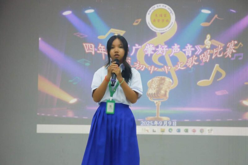 【本报消息】9月9日,广肇学校礼堂(十楼)化身为歌声与梦想交织的舞台,“广肇好声音”中文歌曲大赛在这里热烈举行。本次活动由广肇学校主办,旨在丰富校园文化、展示学生艺术才华,并积极为“2025年柬埔寨中文歌曲大赛”选拔优秀选手。来自四年级至初中部的158名学生怀揣热情登台献唱,经过激烈角逐,32位同学凭借出色表现脱颖而出。