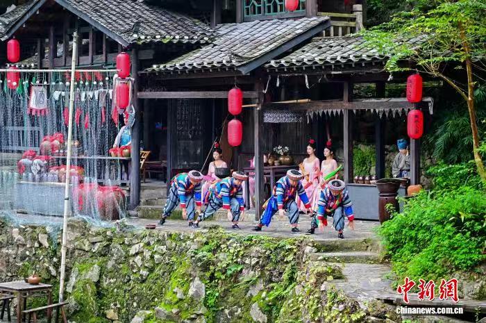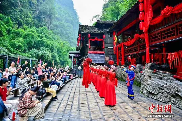 图为三峡人家景区中,民族风情演出。 刘康 摄