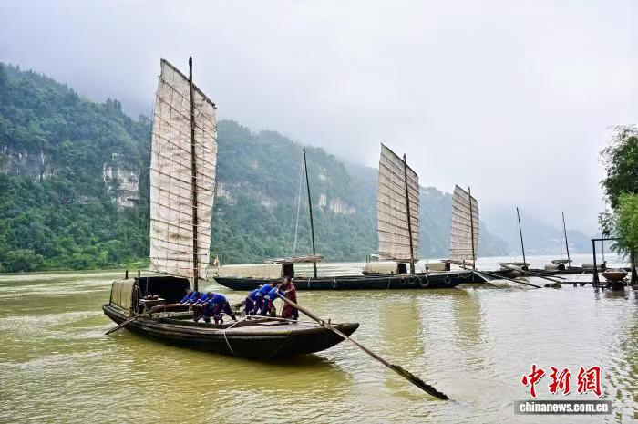 【综合消息】“伙计们,上青滩呐——”高亢的峡江号子响起,船工们声声应和,粗粝的嗓音裹着江风,旧时峡江船只闯险滩、越激流的景象跃然眼前。