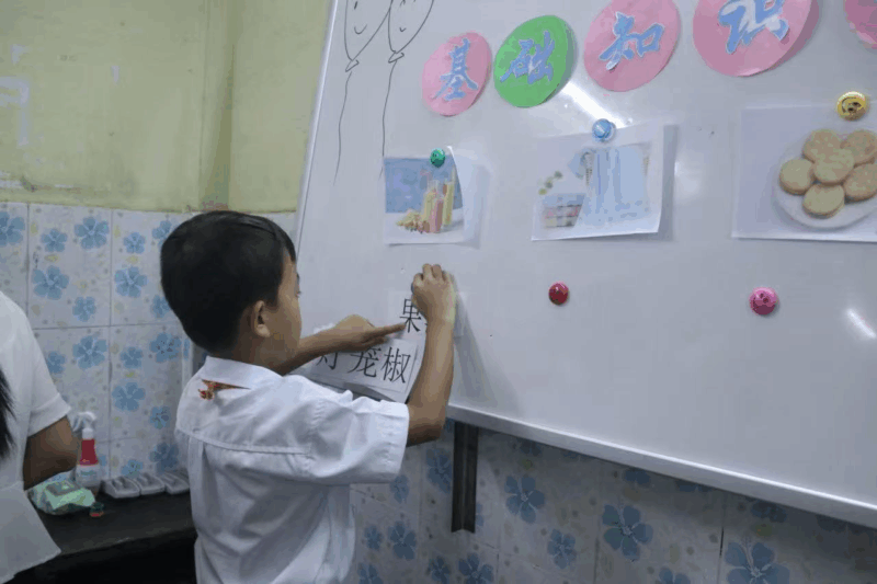 第一阶段比赛为“看图识字”环节,老师把精心准备的25张色彩鲜明、内容贴近生活的图片一一展示,学生们踊跃举手、积极抢答。他们眼神专注、反应敏捷,表现勇敢。根据规则,抢答次数最多且回答正确的五位学生成功晋级,进入更具挑战性的第二轮——“图文匹配”计时赛。在这一环节中,学生需快速将汉字卡片与白板上的图片正确配对,既考验识字量,也锻炼了他们的观察与联想能力。