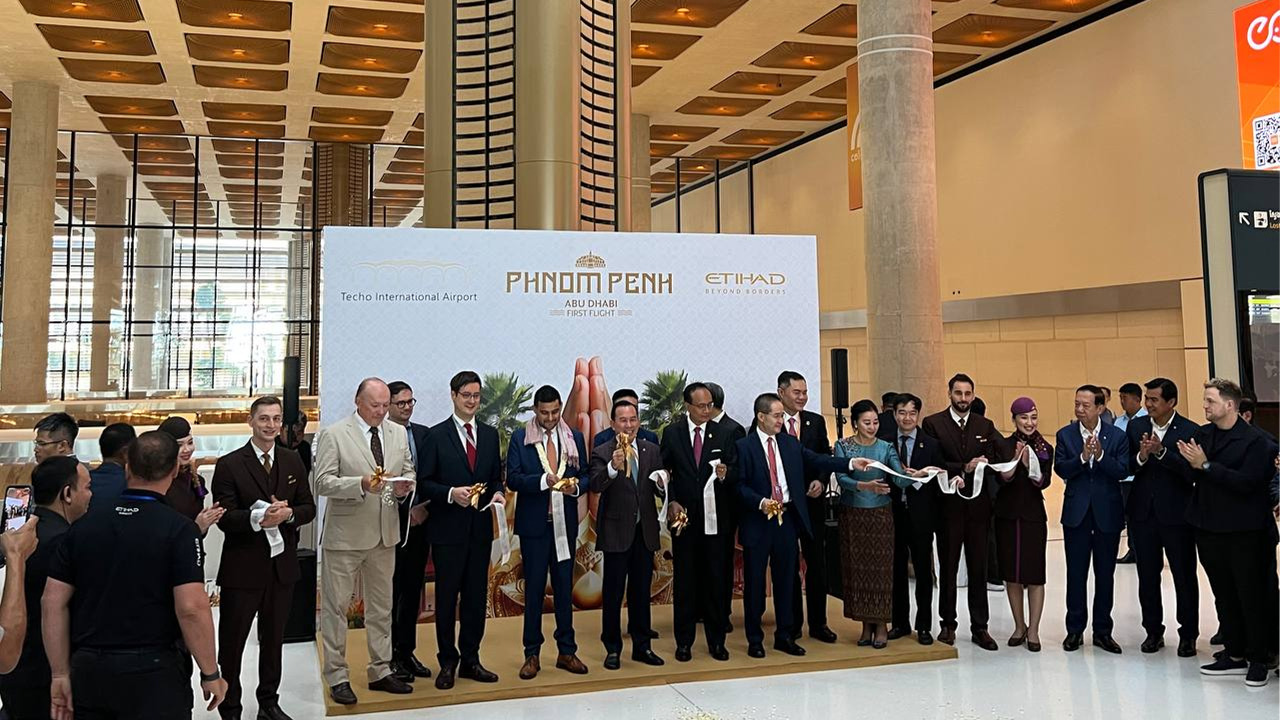 【本报消息】10月4日上午,全球领先的航空公司——阿提哈德航空的首架直飞航班成功降落在德崇国际机场,标志着连接阿联酋阿布扎比与柬埔寨金边的航线正式开通。这一历史性时刻,不仅搭建了柬埔寨与中东地区之间的首条直飞空中桥梁,也创下金边首条远程国际直飞航线的纪录。