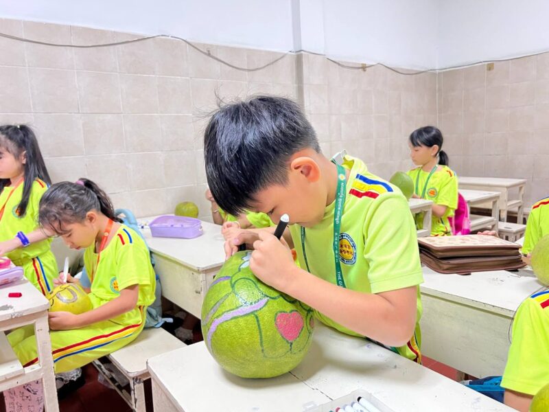 活动当天,校园内张灯结彩,处处洋溢着节日的喜悦。首先开展的是“柚子造型秀”。柚子寓意团圆和吉祥,是中秋节的应景水果,老师们提前准备了新鲜的柚子和丰富的装饰材料,孩子们在老师的引导下,用彩纸、贴画、颜料等为柚子“换上新装”。一双双小巧灵活的手,把普通的柚子变成了憨态可掬的小动物、五彩缤纷的花篮,甚至是小兔子、玉兔等充满节日色彩的形象。孩子们的想象力和创造力在“柚子造型秀”中得到了尽情发挥,每一个作品都承载着童真与欢乐,展示了中秋文化的独特魅力。
