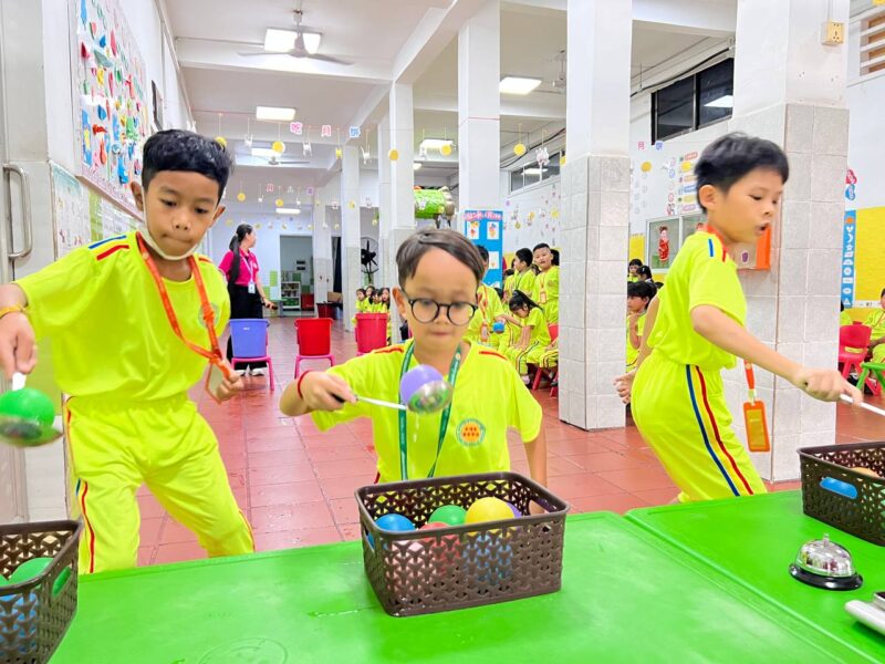 紧接着进行的“猴子捞月”游戏将现场气氛推向高潮。游戏以民间故事为创意来源,寓意孩子们在尝试与探索中感受智慧与坚持的力量。活动规则是:孩子们需要用勺子或筷子等道具,将漂浮在水桶中的小月亮模型捞起来,比一比哪一组合作得最好,哪位小朋友的动作最稳最巧。欢笑声、加油声此起彼伏,孩子们在玩乐中体验到团队协作与勇于挑战的乐趣。