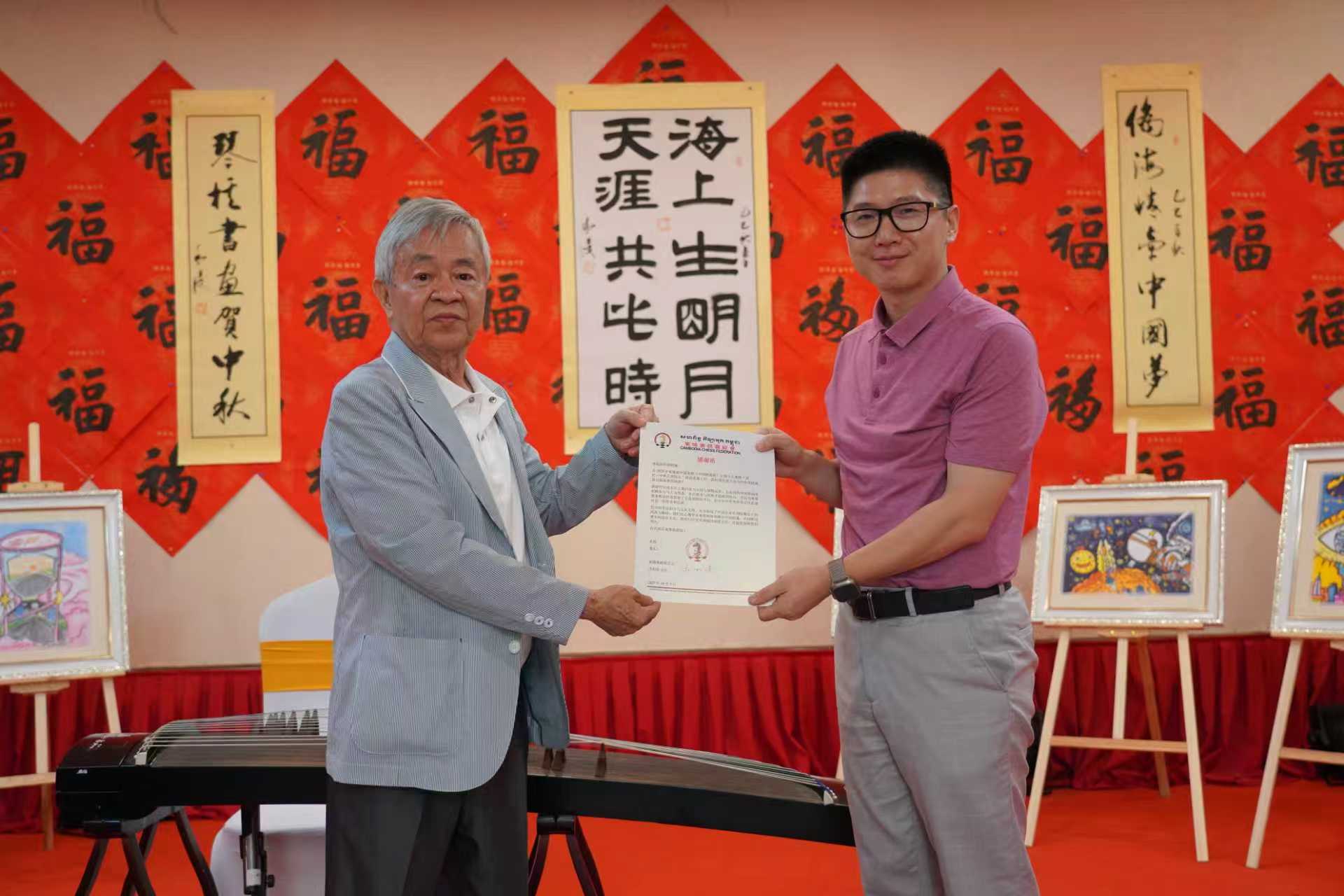 柬华理事总会秘书长钟耀辉在为季军颁奖时,向冯利发会长及组委会表达了崇高的敬意,并对象棋活动在传承中华文化、凝聚侨心方面发挥的作用给予高度评价。