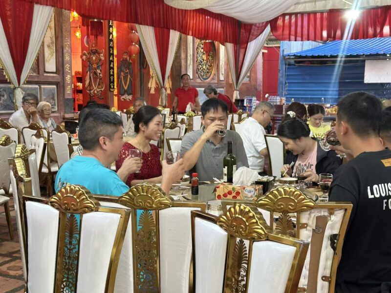 活动当晚,会馆红灯高挂,金椅玉案,处处洋溢着节日的温馨氛围。老师们围坐一桌,共享美味菜肴与地道的闽式风味,举杯互祝节日快乐。欢声笑语间,异乡也有了“家”的味道。