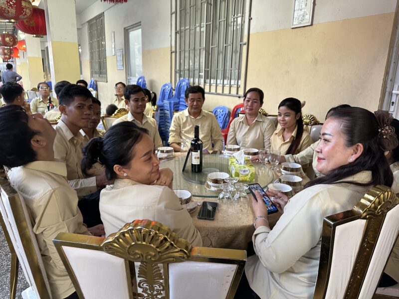 【本报消息】2025年10月7日,农历八月十六日晚,金边福建会馆内张灯结彩、气氛热烈。福建会馆举办中秋联谊聚餐活动,民生学校全体教师受邀参加,共叙乡情,共庆佳节。