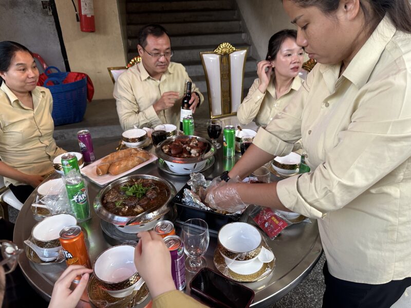 皓月当空,情谊绵长。在轻松愉快的氛围中,教师们畅谈教学心得,分享在柬生活的点滴。随着夜色渐深,杯盏交错,笑语盈盈,温情与感恩在会馆的每个角落流淌。这场中秋聚餐不仅是一顿饭,更是一份文化的延续,一次情谊的凝聚。