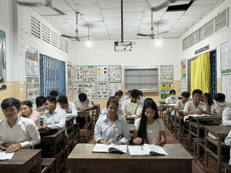 乌廊市的傍晚总裹着一层温热的风,当我结束下午的中文课,准备开始晚上中一年级的华文课时,校门口总会准时出现一些引擎声渐歇的摩托车。走进校园,校门口的嬉笑声,老师之间的合十礼,学生们的击掌动作,这是我每天都能见到的校园场景。家住在附近的孩子们,总能在我进教室前坐在教室里,稍远的学生也会陆陆续续踏进教室,而我的班上有一位特别的学生,总是踩着铃声打着报告,站在教室门口向我示好。