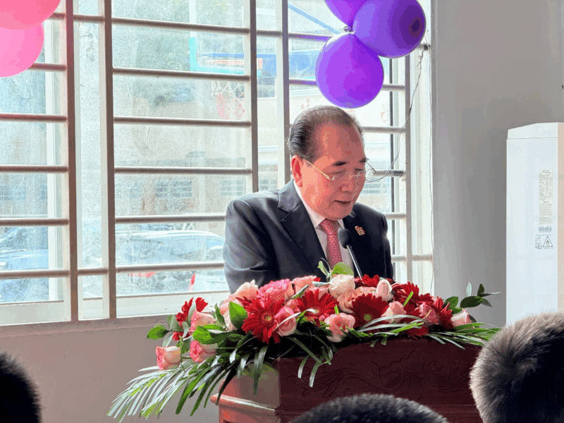 郑源来会长致辞:“金秋十月,海风送爽。今天,我们怀着无比激动和自豪的心情,迎来了尊贵的到访客人——中国海军官兵代表团。西港港华学校的校园里,洋溢着热情与崇敬的气氛,涌动着浓浓的家国温情;让柬埔寨这片土地上的华文教育热土,增添了一份来自祖国后盾的关怀与力量。在此,我谨代表西港柬华理事会、港华学校全体师生,向远道而来的中国军舰官兵和使馆外交官致以最热烈的欢迎!