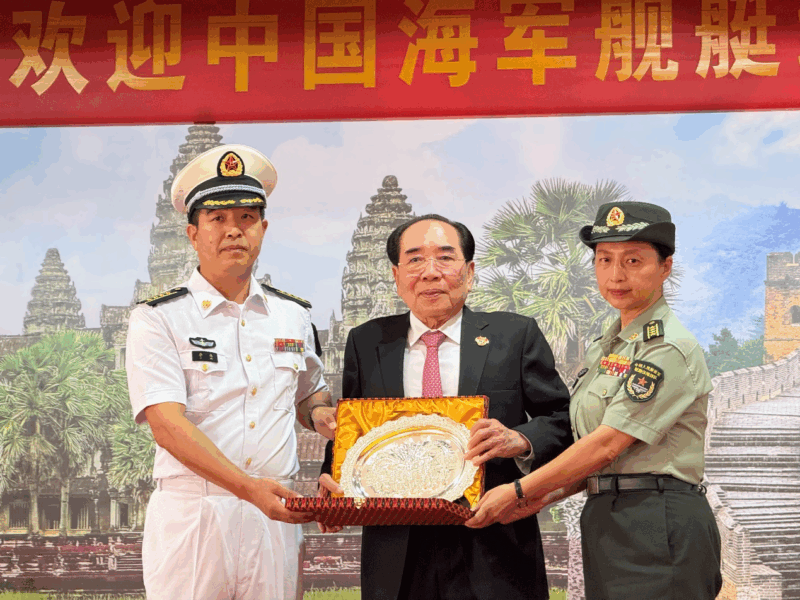 接着,全体人员共同观看了港华学校的宣传片,了解学校在华文教育、文化交流等方面取得的成果。柬华理事总会监事长兼西港柬华理事会会长郑源来公爵与中国海军李伟大校分别致辞。郑源来会长在致辞中对中国海军官兵的到来表示热烈欢迎,并感谢他们为中柬友谊作出的积极贡献。
