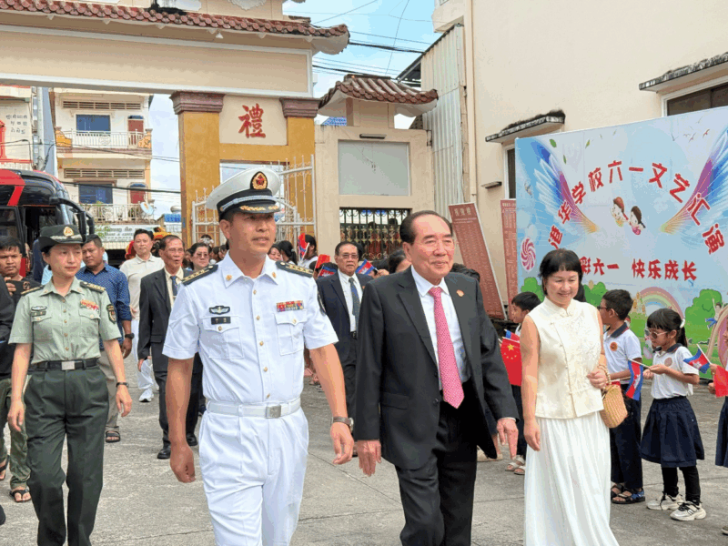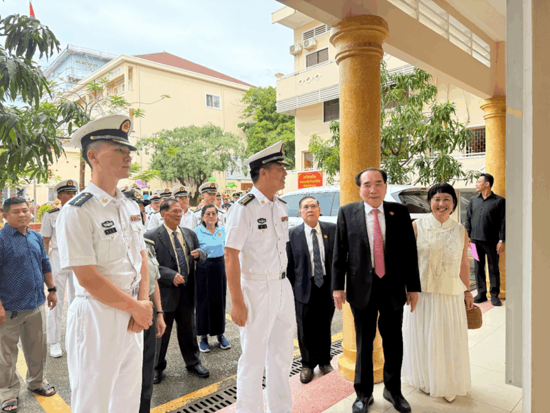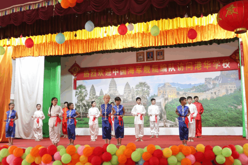 中国海军第83舰编队访问西港 港华学校师生热情迎接共叙中柬友谊