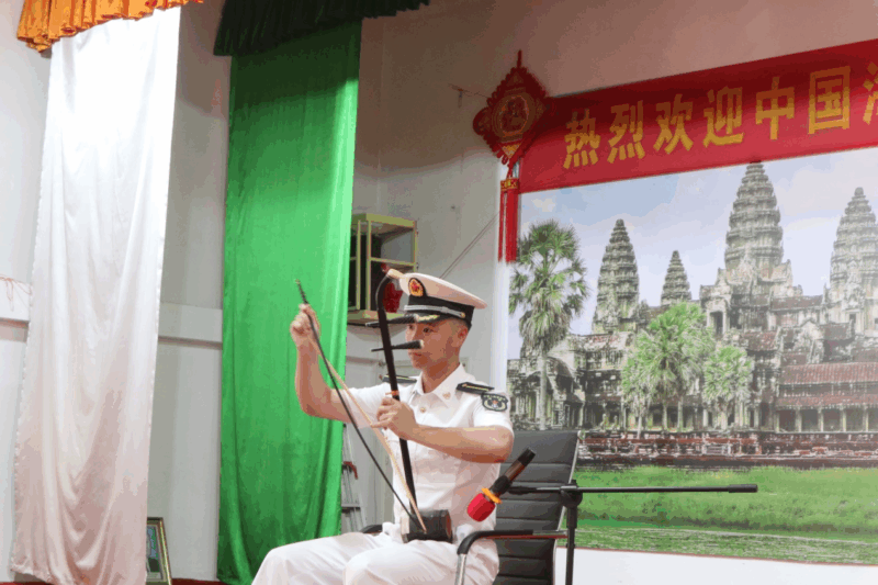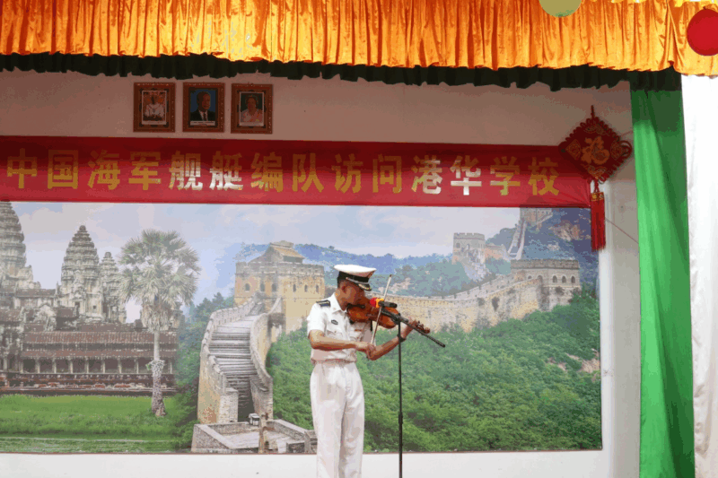 最后,请允许我以一句柬华谚语结语:“水有源,树有根,人有国。”中国军舰的到访,是为海外华人加油鼓气,是对华文教育的肯定,更是对中柬世代友好的见证。港华学校将永远铭记于这份美好回忆,继续做好中华文化的传播者、中柬友谊的桥梁。祝我们的祖国繁荣昌盛,愿中柬两国友谊万古长青!”