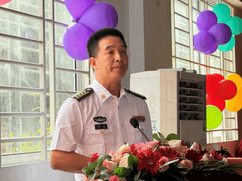 中国海军李伟大校在发言中高度评价港华学校在促进中柬人文交流方面的努力,他表示,“此次我们再次到访,正是希望让更多的中国海军官兵,尤其是我们年轻的海军院校学员,他们也是中国海军未来的领导者,能够亲身体验港华学校的建设成就,并通过与老师、孩子们的直接交流,进一步传递中国的友好情谊与真诚问候。同时,这里还有19名来自中国的华文支教老师,83舰编队官兵也给你们带来了祖国亲人的问候,我谨代表编队全体官兵向你们表示诚挚的敬意。我相信,通过这样的交流,必将能够让柬中友好的理念更加深入人心。”李伟大校还勉励学生珍惜学习机会,成为中柬友好的桥梁与纽带。