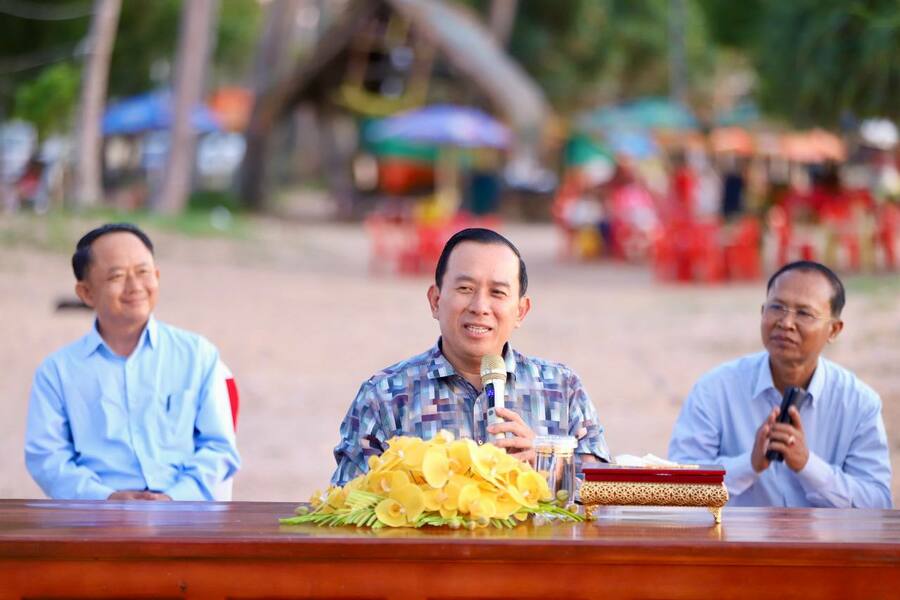 ស្រុកដំណាក់ចង្អើរ, ខេត្តកែប, ថ្ងៃទី១៣ ខែតុលា ឆ្នាំ២០២៥ ក្នុងឱកាសអញ្ជើញចូលរួមពិធីបើកសិក្ខាសាលាផ្សព្វផ្សាយ ស្តីពីការតភ្ជាប់តំបន់ទេសចរណ៍បេតិកភណ្ឌសៀមរាប-អង្គរ ទៅកាន់តំបន់ឆ្នេរ ឯកឧត្តម ហួត ហាក់ រដ្ឋមន្រ្តីក្រសួងទេសចរណ៍ បានអញ្ជើញជួបសំណេះសំណាលជាមួយអ៊ំ ពូមីង បងប្អូនអាជីករ និងប្រជានេសាទនៅតាមតំបន់ឆ្នេរអង្កោល នៅស្រុកដំណាក់ចង្អើរ ខេត្តកែប។