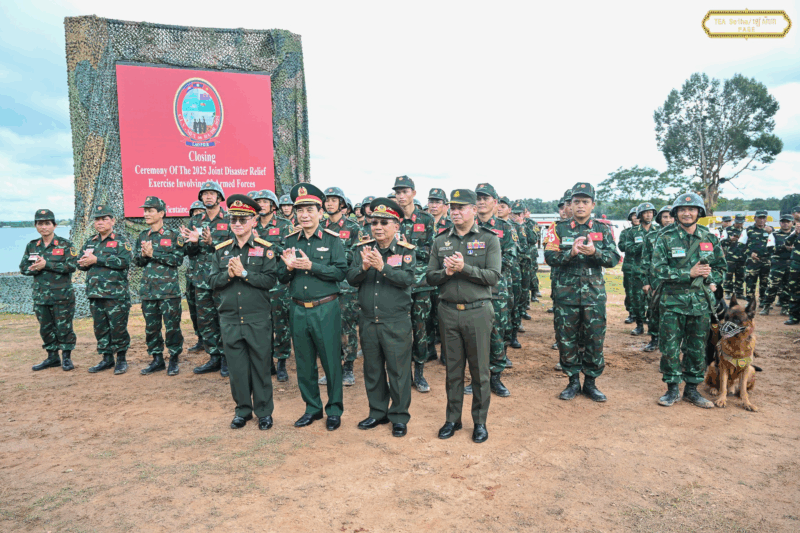 10月14日,狄西哈部长在老挝万象省安南嗡救灾训练区,出席了三国陆军联合救灾演习。本次演习以“洪水和山体滑坡救援”为主题,内容涵盖了建筑物倒塌搜救、水域人员营救等多个课目,旨在显著提升三国军队在应对自然灾害时的协同救援能力。