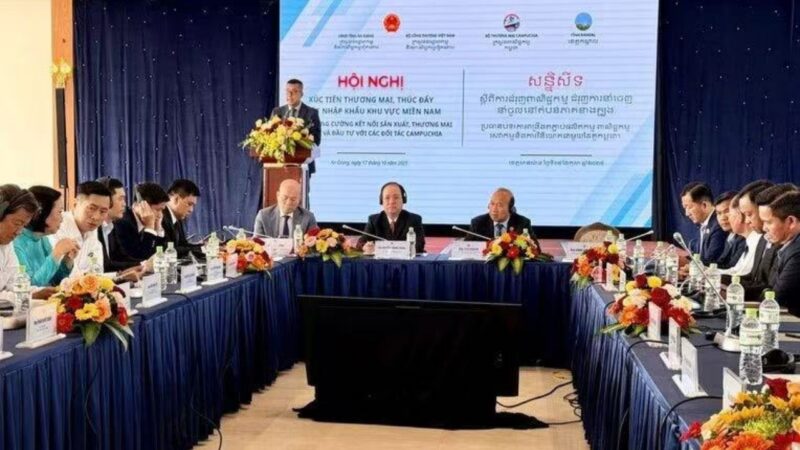 【本报消息】为进一步推动双边经济合作,共同迈向200亿美元贸易目标,柬埔寨商业部与越南工贸部于10月17日在越南安江省联合举办了贸易促进会议。