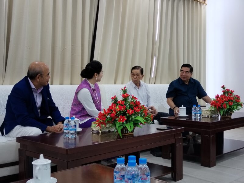 在潮州会馆办公大楼会客厅,李捷贵勋爵用潮州家乡话接受李红梅女士的采访。李捷贵介绍,潮州会馆端华学校最早在一百多年前创立。柬埔寨潮州人为数众多,经历数代人的生生不息的传承,目前潮州裔人数,粗略估计有上百万人。柬埔寨潮州人基本上都是保持先辈们从家乡带来的传统文化,家乡的文化一直都在延续。