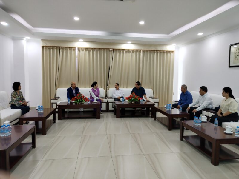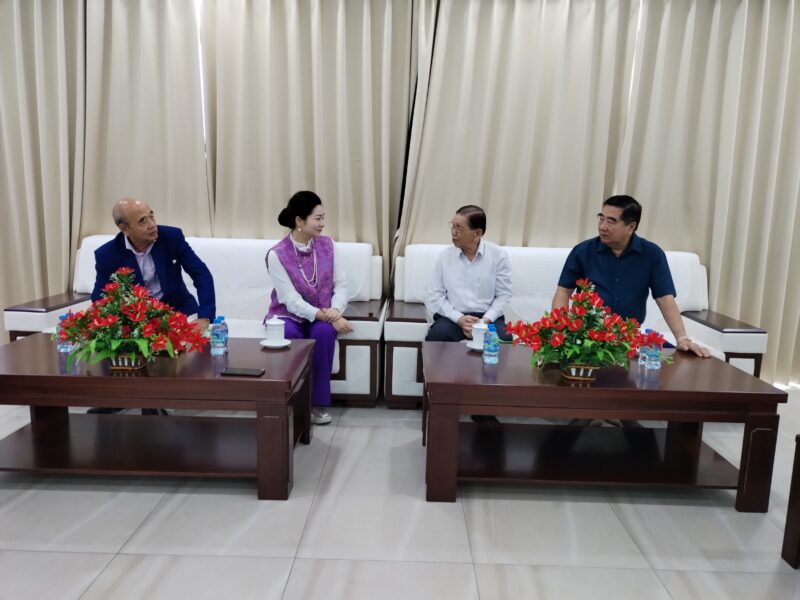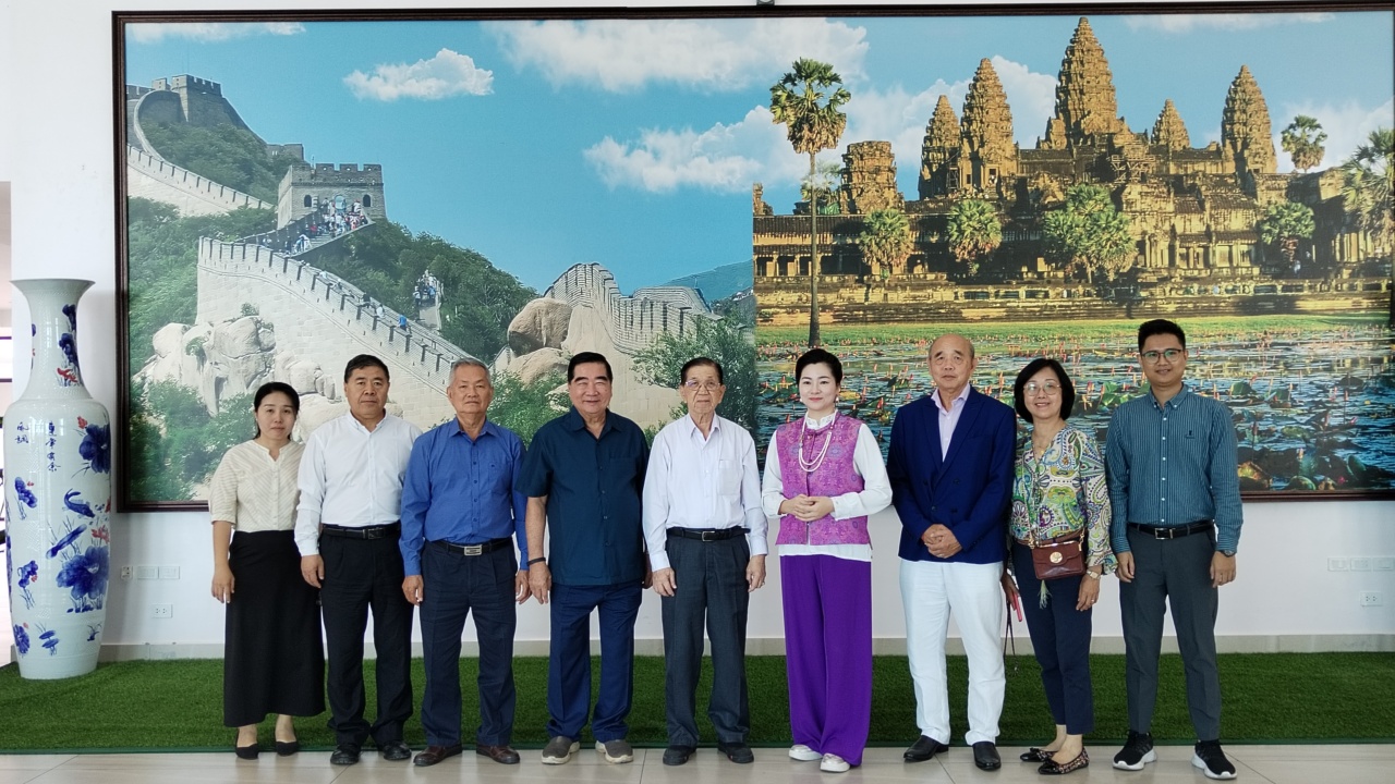 李红梅一行到访时,潮州会馆最高常务委员会副主席方灿成勋爵,法国潮州会馆文瑞潮夫妇陪同。潮州会馆秘书长、端华大学筹办委员会常务顾问李捷贵勋爵、蔡伟华勋爵,端华学校总校长贺继乐、端华大学柬方校长陈德林,端华大学英文系副校长张双银等端华大学代表热情接待客人,双方举行座谈交流。