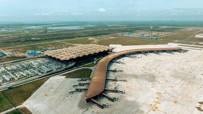 据方侨生大公爵介绍,德崇国际机场采用分阶段建设的长期发展战略。一期工程完成后,年旅客吞吐量设计能力为1500万人次。随后的二期工程将使年接待能力提升至3000万人次,最终的三期工程目标为每年接待5000万人次旅客,从而实现承载能力的阶梯式增长,以满足柬埔寨未来数十年的航空需求。