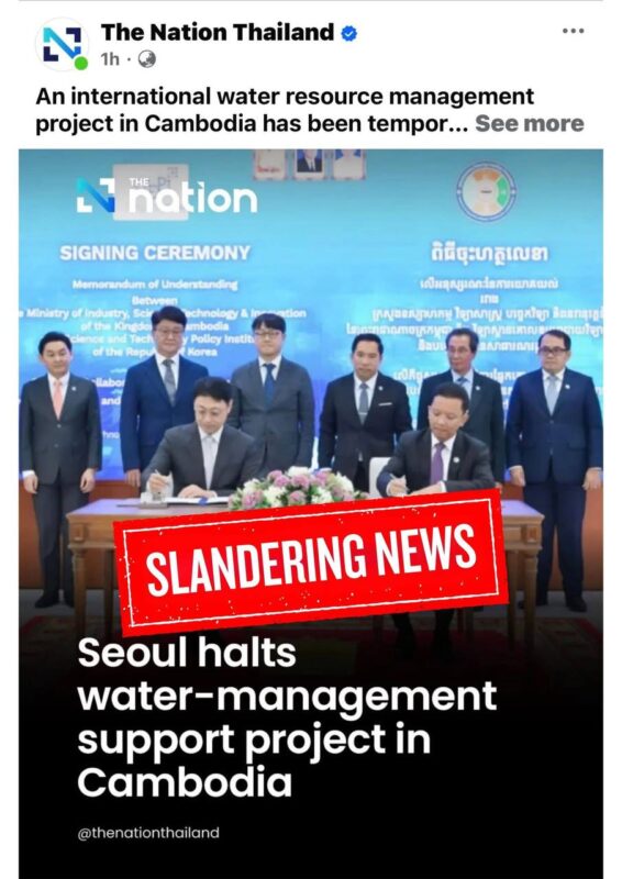 【本报消息】柬埔寨工业和科技创新部19日发布通告,对泰媒《The Nation Thailand》关于“韩国暂停柬埔寨水资源管理项目”的报道表示坚决驳斥。