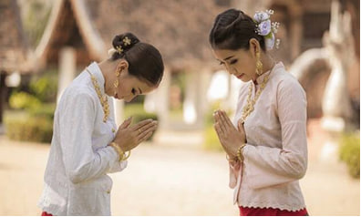 第四级,是对王室成员与僧侣的行礼。双掌举至眉间,深深鞠躬,恰如花朵盛开,仪态庄重、美感尽显,是礼的高峰,也是精神的绽放。