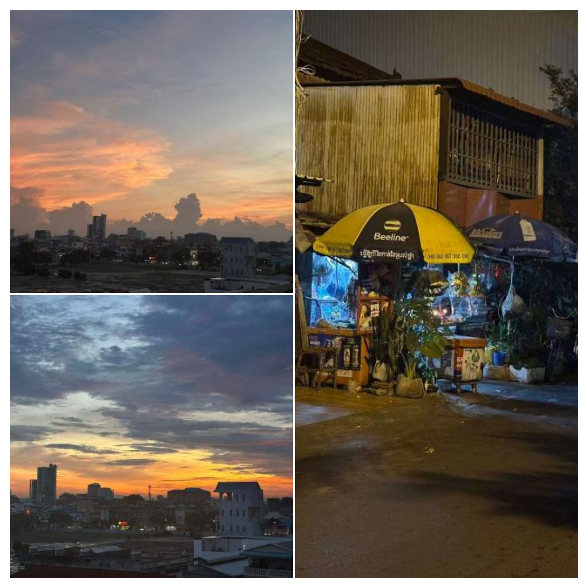 每次从学校出来,或是晚饭后散步经过,那盏小灯总会准时亮起,温柔地照亮我回住处的路。老爷爷从不主动招揽生意,只是在有人光顾时,才会露出淳朴的微笑,用不太熟练的中文或高棉语交流。有一次我问他在这里开店多久了,他只是摆摆手,笑着说“很久了”,那笑容里藏着岁月的沉淀,也藏着这座城市的故事。