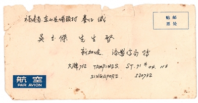 通过新加坡添盛信局转寄给东山的家书。