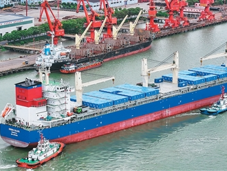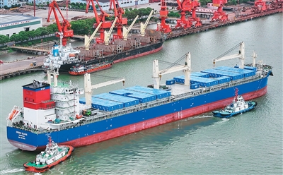 九月十八日,江苏省张家港港务集团有限公司码头,一艘利比里亚籍货轮驶离泊位,开往秘鲁钱凯港。这是第一条从中国直达钱凯港的件杂货班轮航线。