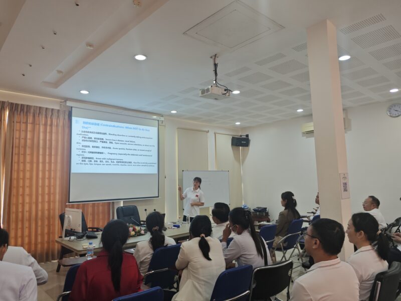 活动当天下午,医疗队还为暹粒省及周边地区的医疗同行举办了三场专业培训讲座。场场座无虚席。讲座内容紧密结合临床实际,操作性强,柬方医护人员在会后纷纷表示受益匪浅,希望未来能有更多这样的学习机会。