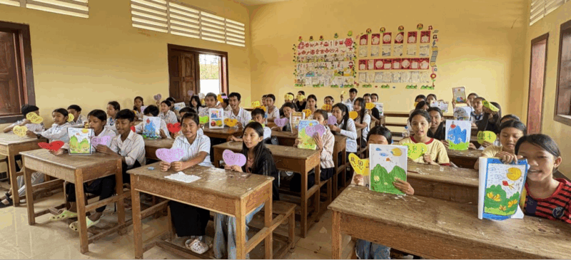 互动环节,我让学生们分享自己与长辈之间的温暖回忆。有的学生讲述了外公带自己去钓鱼的快乐时光,有的学生提到奶奶为自己做的美味饭菜。他们的声音中充满了对长辈的敬爱和感激。在这个过程中,我发现虽然柬埔寨和中国有着不同的文化背景,但尊老、感恩的情感却是共通的。学生们用自己的语言和方式表达着对长辈的爱。