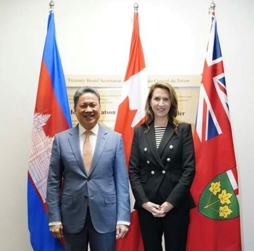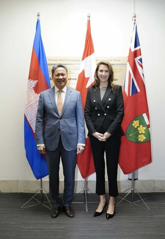 ក្នុងឱកាសដឹកនាំគណៈប្រតិភូកម្ពុជាបំពេញបេសកកម្មទាក់ទាញ និងជំរុញវិនិយោគនៅក្នុងប្រទេសកាណាដា ឯកឧត្តម ស៊ុន ចាន់ថុល ឧបនាយករដ្ឋមន្ត្រី អនុប្រធានទី១ ក្រុមប្រឹក្សាអភិវឌ្ឍន៍កម្ពុជា បានអញ្ជើញជួបសម្តែងការគួរសម និងពិភាក្សាការងារជាមួយ លោកជំទាវ Caroline Mulroney សមាជិកសភានៃរដ្ឋបាលខេត្តអុនតារីយ៉ូ និងជារដ្ឋមន្ត្រីទទួលបន្ទុកកិច្ចដែលនិយាយភាសាបារាំង ព្រមទាំងជាប្រធានក្រុមប្រឹក្សាភិបាលរតនាគារខេត្តអុនតារីយ៉ូ ផងដែរ។