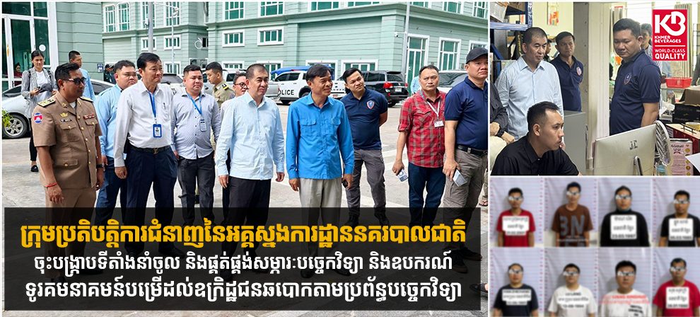 ដោយអនុវត្តតាមបទបញ្ជារបស់នាយឧត្តមសេនីយ៍ ស ថេត អគ្គស្នងការនគរបាលជាតិ កាលពីថ្ងៃទី២៧ ខែតុលា ឆ្នាំ២០២៥កន្លងទៅនេះ ឧត្តមសេនីយ៍ឯក យឹម លាង អគ្គស្នងការរងនគរបាលជាតិ និងជាប្រធានក្រុមប្រតិបត្តិការជំនាញ ដោយមានការសម្របសម្រួលពីលោក ស៊ិត វណ្ណៈ តំណាងអយ្យការអមសាលាដំបូងរាជធានីភ្នំពេញ បានដឹកនាំកម្លាំងជំនាញចុះបង្ក្រាបទីតាំងនាំចូល និងផ្គត់ផ្គង់សម្ភារៈបច្ចេកវិទ្យា និងឧបករណ៍ទូរគមនាគមន៍ បម្រើដល់ឧក្រិដ្ឋជនឆបោកតាមប្រព័ន្ធបច្ចេកវិទ្យា (ONLINESCAM) ស្ថិតនៅផ្ទះលេខ N៤២ ផ្លូវបេតុង ក្រុម១៤ ភូមិ៧៨ សង្កាត់ទន្លេបាសាក់ ខណ្ឌចំការមន រាជធានីភ្នំពេញ។
