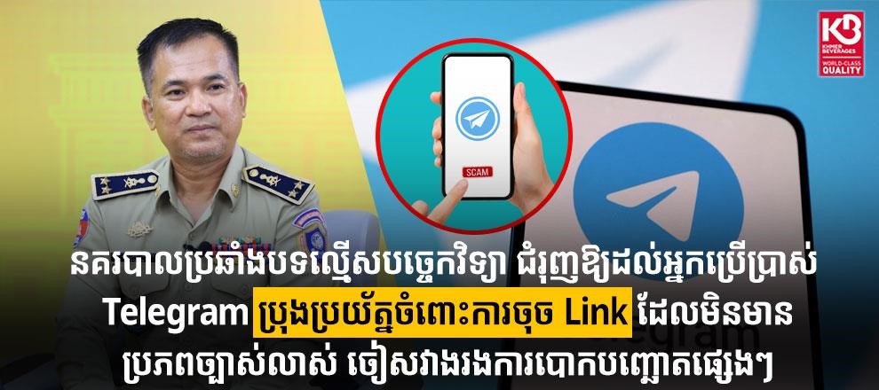 ឧត្ដមសេនីយ៍ទោ រៀល សុភា អនុប្រធាននាយកដ្ឋានប្រឆាំងបទល្មើសបច្ចេកវិទ្យា បានជំរុញឱ្យដល់អ្នកប្រើប្រាស់ Telegram ប្រុងប្រយ័ត្នចំពោះការចុច Link ដែលមិនមានប្រភពច្បាស់លាស់ ចៀសវាងរងការបោកបញ្ឆោតផ្សេងៗ។