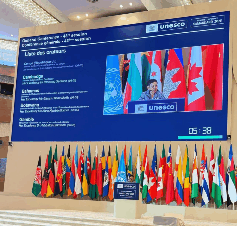 柬埔寨重申对联合国教科文组织合作伙伴关系的高度重视,并将继续依据2030年可持续发展目标,在教育、文化、科学和传播等领域持续推进发展。
