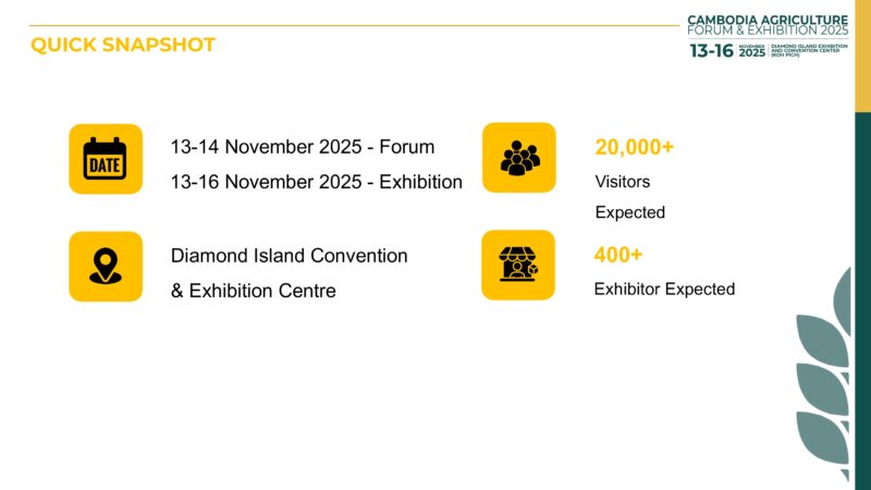ក្នុងសន្និសីទសារព័ត៌មានកាលពីថ្ងៃទី៣ ខែតុលា ឆ្នាំ២០២៥ លោក ប្រាក់ ដាវីដ រដ្ឋលេខាធិការ នៃក្រសួងកសិកម្ម រុក្ខាប្រមាញ់ និងនេសាទ បានមានប្រសាសន៍ថា វេទិកា និងពិព័រណ៍នេះ ផ្ដល់ឱកាសឱ្យអ្នកចូលរួមអាចជួបផ្ទាល់ជាមួយតួអង្គពាក់ព័ន្ធក្នុងខ្សែចង្វាក់តម្លៃផងដែរ។ ពិធីនេះ គ្រោងនឹងអញ្ជើញកសិករប្រមាណជាង ៨០០០នាក់ ដើម្បីមកចូលរួមដោយផ្ទាល់ ឱ្យពួកគាត់បានមើលឃើញពីសមិទ្ធផលដែលកើតចេញពីកសិផលស្រស់ ទៅជាផលិតផលពាក់កណ្ដាលសម្រេច និងផលិតផលសម្រេច។
