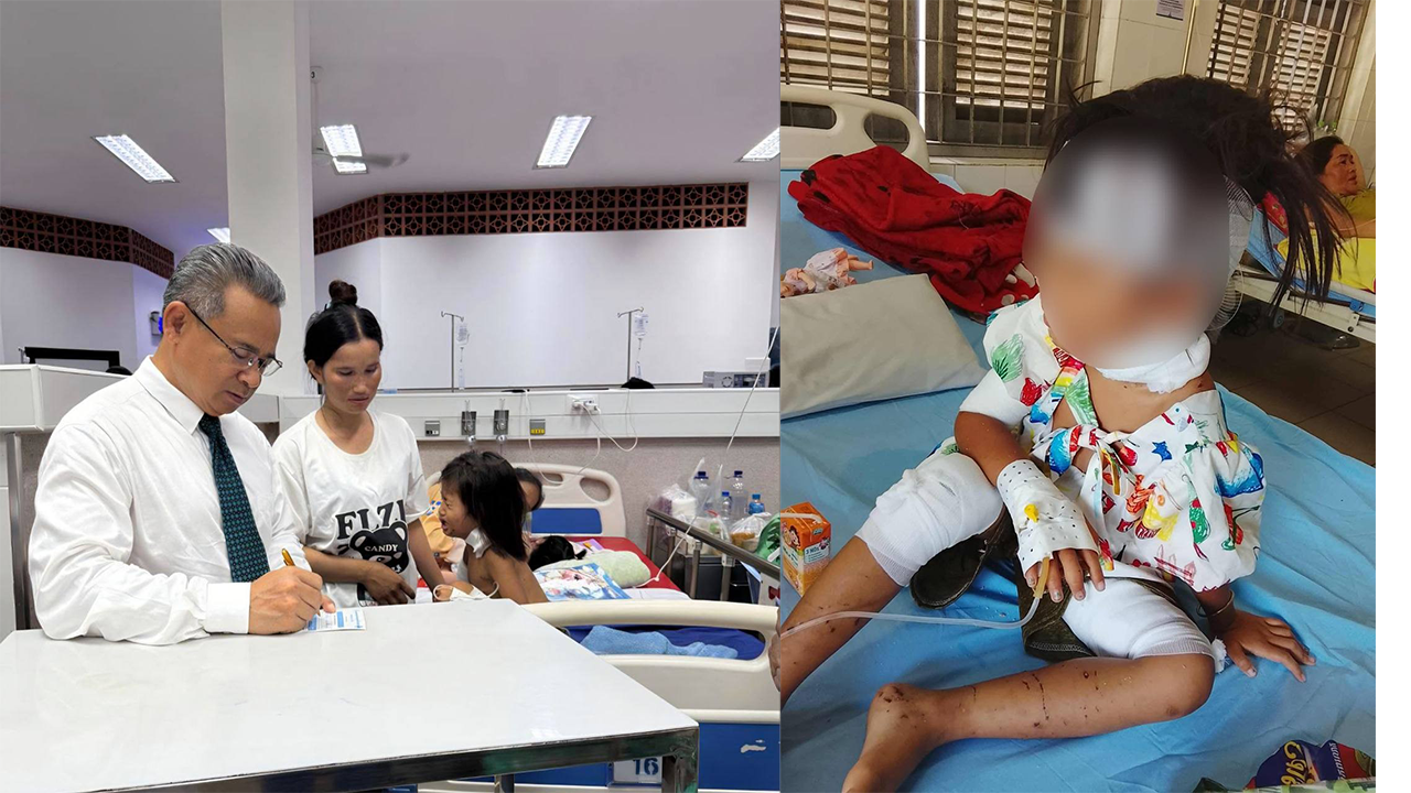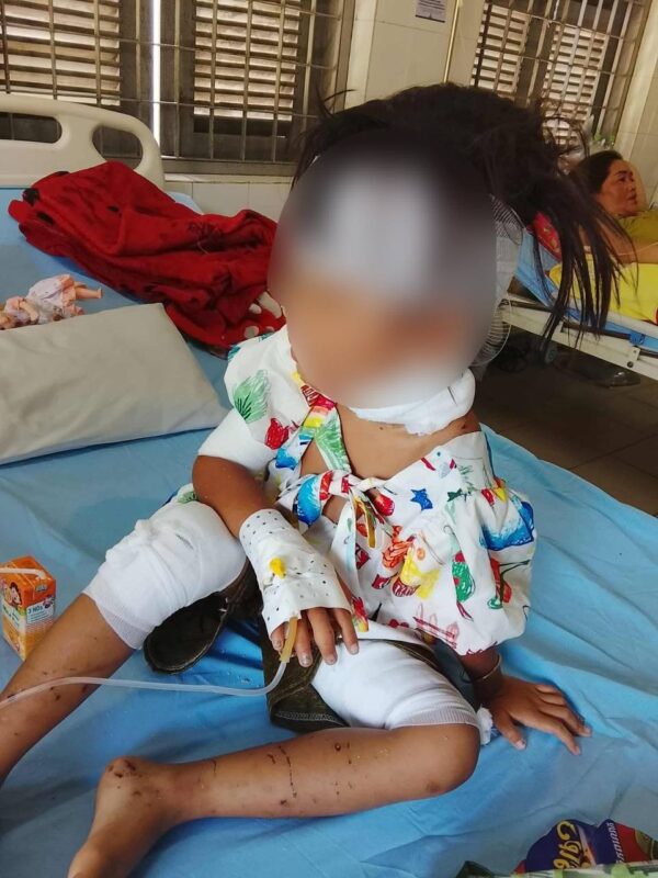 【本报消息】国公省近日发生一起令人痛心的流浪狗伤人事件。一名年仅4岁的女童在放学回家途中突遭流浪狗群围攻撕咬,导致身体多处重伤。目前,该女童已在金边市坤塔宝花儿童医院成功接受手术,并正接受后续治疗。