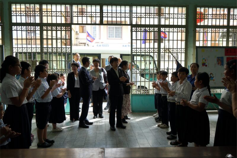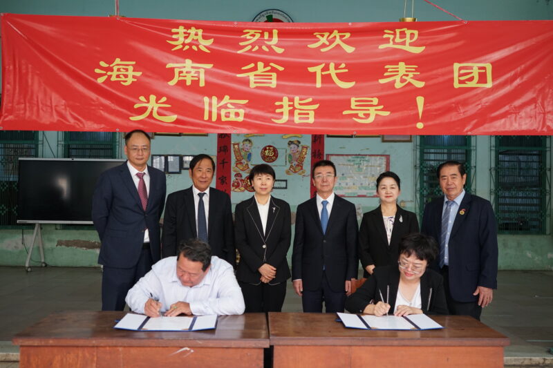随后,在中国驻柬大使馆武晓峰参赞、刘召兴领事,海南省委常委、海南省海外联谊会尹丽波会长,柬埔寨海南会馆执行会长韩强畴公爵、副会长符鸿英等的共同见证下,集成公校与海南省的海南中学成功签署了合作协议。此举标志着琼柬两地的教育交流与合作迈出了重要一步,将为海外琼籍青年的教育发展提供更广阔的平台。