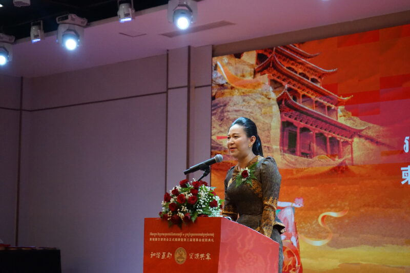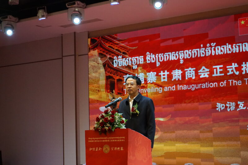 甘肃省工商联副主席兼甘肃省总商会副会长毛赟对柬埔寨甘肃商会正式揭牌暨第三届理事会就职典礼表示热烈祝贺,并希望在火照国会长的领导下,柬埔寨甘肃商会越来越好。