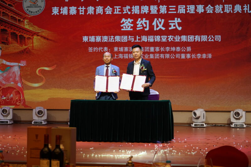 此外,现场还举行了隆重的签约仪式,包括柬埔寨奥法集团与上海福锦堂农业集团有限公司,甘肃省侨商联合会与柬埔寨甘肃商会。